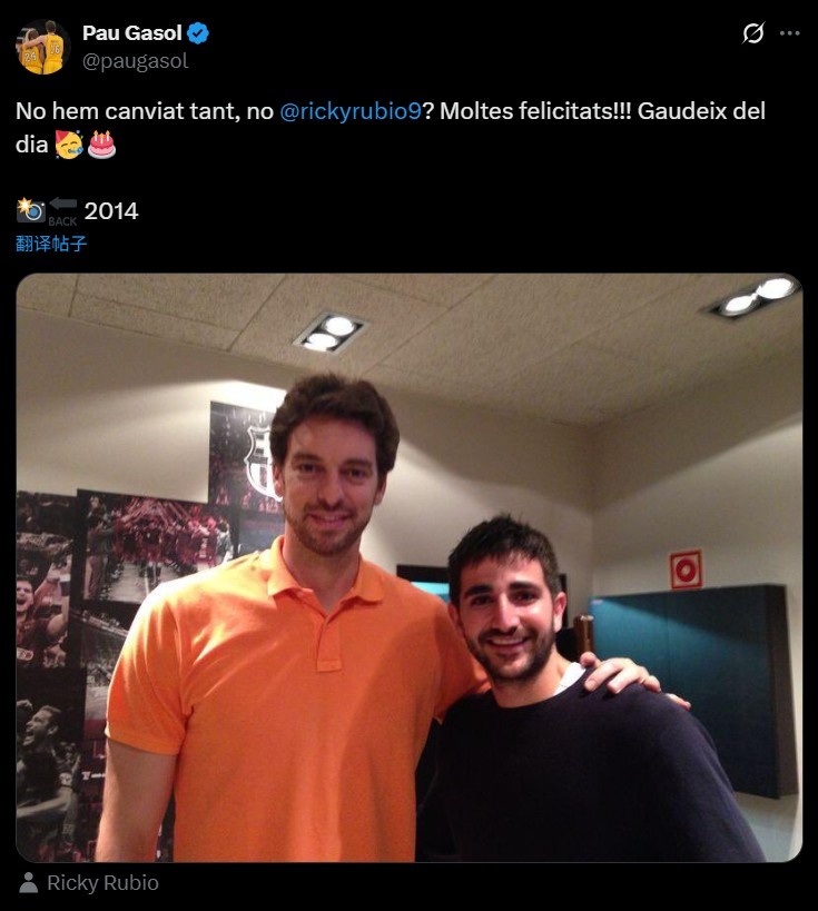 Gasol đã đăng một bức ảnh của anh ấy và Rubio vào năm 2014 trên mạng xã hội với chú thích: Chúng ta không thay đổi nhiều phải không? Chúc mừng! Chúc bạn mọi điều tốt đẹp nhất!