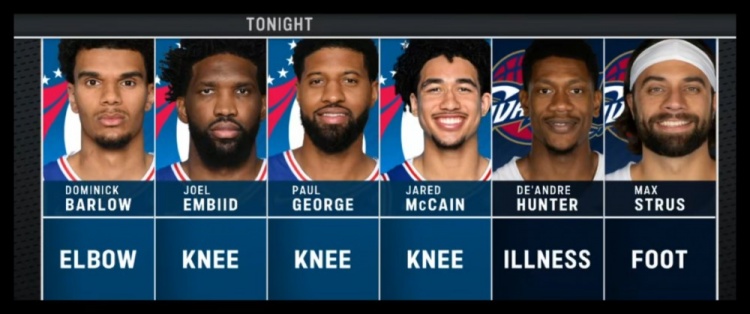 Cả trại đầy thương binh! 76ers vs Cavaliers, tổng cộng 6 cầu thủ vắng mặt: Embiid/George/Hunter/Strus, v.v.