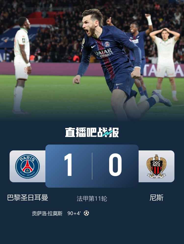 Gonzalo Ramos ghi bàn thắng quyết định ở phút bù giờ. Paris đánh bại Nice 1-0 Vòng này, Paris tạm dẫn trước 4 điểm so với trận đầu tiên.