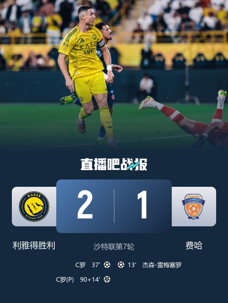 Ronaldo đã thực hiện cú sút kép và ghi được 952 bàn thắng trong sự nghiệp. Riyadh Victory ngược dòng thắng Feha 2-1 trên sân nhà. Victory khởi đầu giải đấu với chuỗi 7 trận toàn thắng.