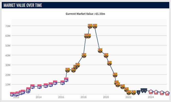 Giá trị ròng của Umtiti lên tới 70 triệu euro vào lúc cao điểm, nhưng bây giờ chỉ còn 1,5 triệu euro.